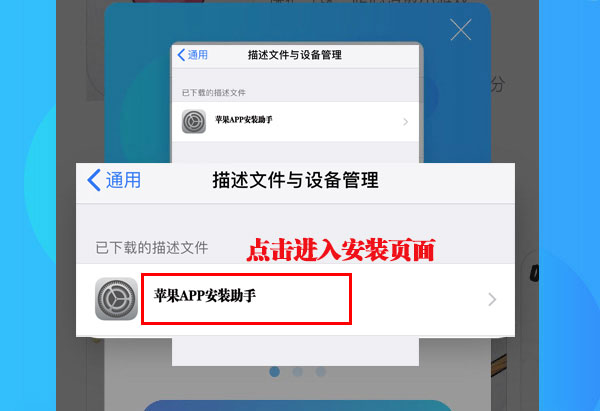 2、点击手机的设置 >> 通用 >> 描述文件 >> 进行安装即可